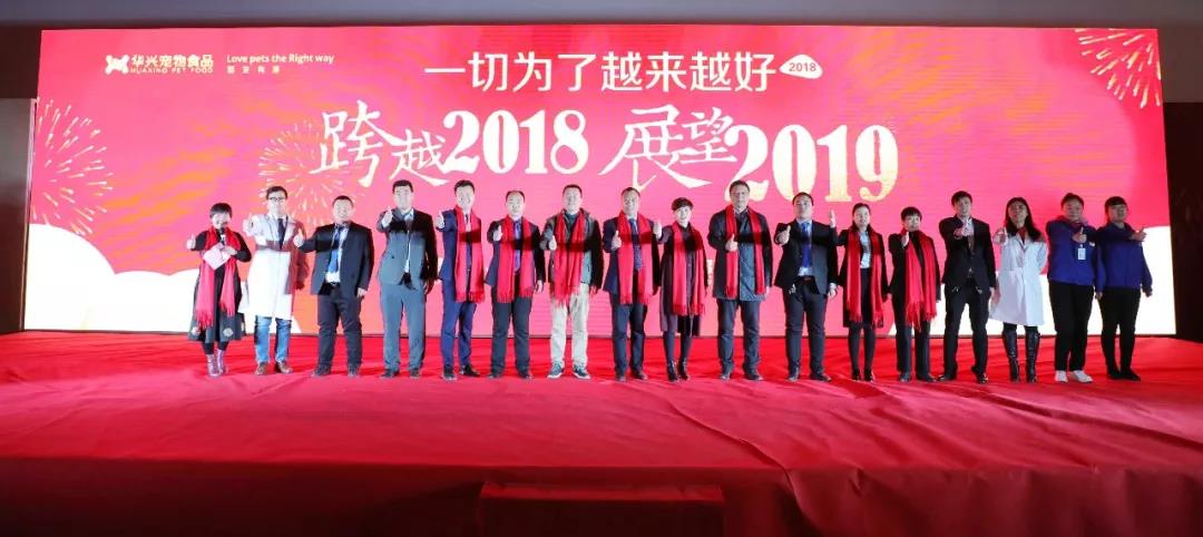 年會重頭戲為華興寵物食品有限公司董事長冀葉軍做“華興公司2018年工作回顧與2019年發展規劃”的主題報告。