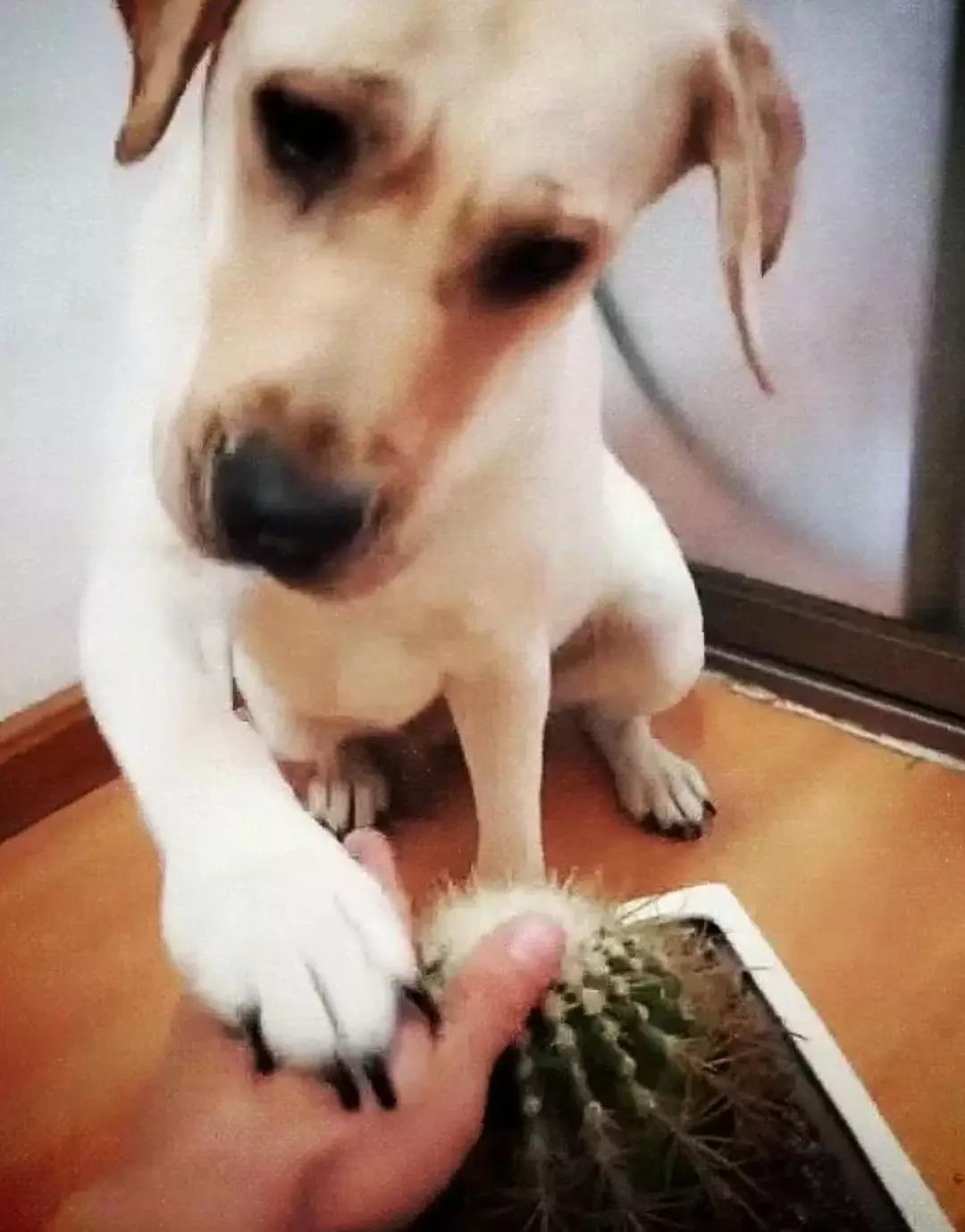 這只被鏟屎官騙著摸仙人掌的狗狗,眼看著就要摸上刺了......