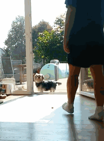 我們家的狗子,以為陽臺的門關著,然后就真的等我來開門。